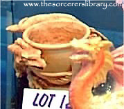 For some reason this Piece was never released, one was sold at the 1999 Extravaganza auction for £350 (see pictures near bottom of this page) and was supposed to be a one off but I do know of two others in existence, One is shown in the main photos which I own and the other is shown lower down the page A Medium size Candle holder was made that was never released Click Here to see it Also a tall oil burner was made that was never released Click Here to see it, and a small oil burner was made and also never released Click Here to see it I have Rob Simpsons Original artwork for a few Oil/Candle burners - see pictures on this page. |