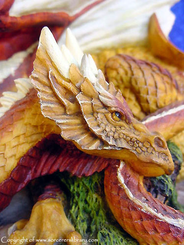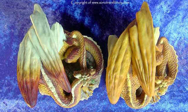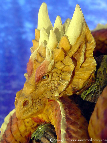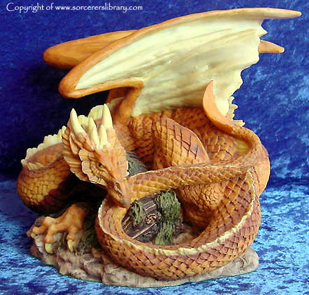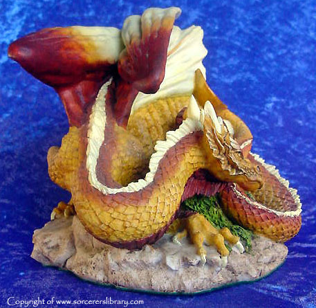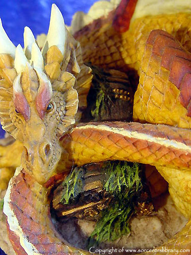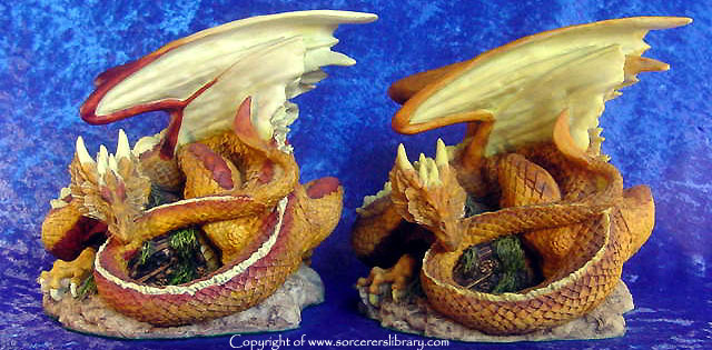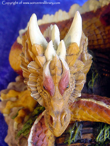 This is the 1st Edition Arangast. When first released this piece had a drab yellow colour but when 'Flight to Danger' was released Arangast (the dragon on 'flight') was painted in more vivid yellows and browns and it was not long after that when this piece started getting painted in the same style (see photos at the bottom of this page for comparison) |