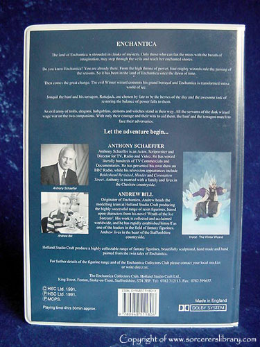 A frequently asked question is are the other books available as tape sets, well the answer is No, I do know that the second book 'The Well of Hope' was test recorded by Anthony Schaeffer but for some unknown reason it was never released even though it was advertised in the Club Newsletter No. 10 and also in an Enchantica catalogue which also had a picture of it and was even alocated the number EN2152 it was given a release date of July 1994 as a set of four tapes in the same case as tape set 1, all that I know that now exists is the original set of tapes that were made as the test recording that were sent to the recording studio for approval |