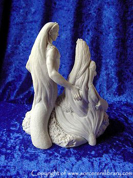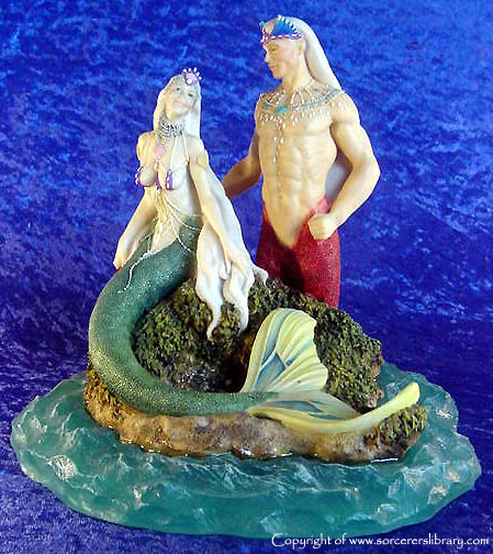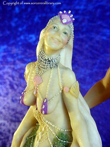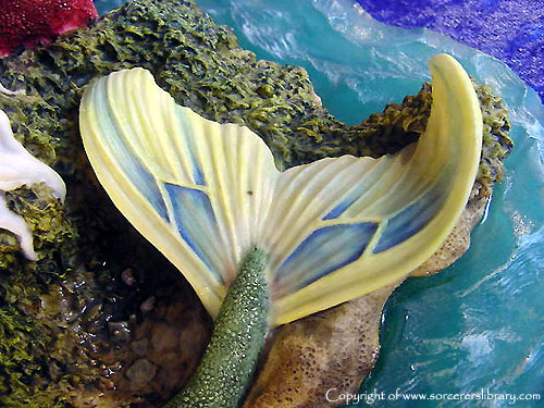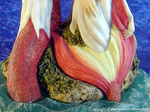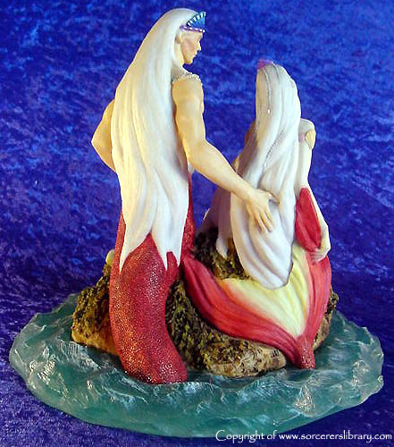 This piece sold better in America than in the UK and is the only piece of Enchantica to include Mer-Folk A version of this was sold at the 1996 Extravaganza auction with a clear resin base instead of the blue resin - if anyone can supply me with photos of this piece I would love to see them as I somehow forgot to take a photo at the show Contact Me |