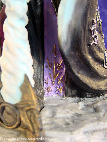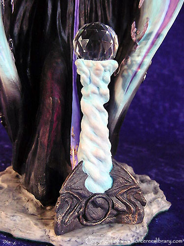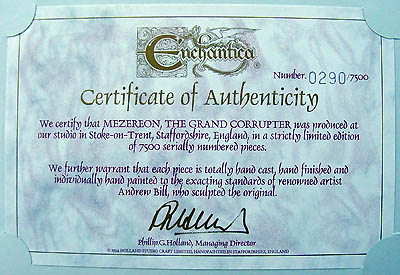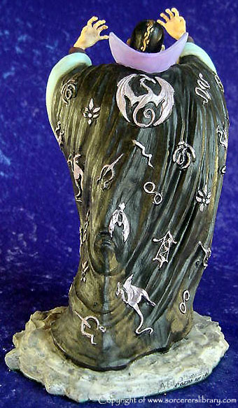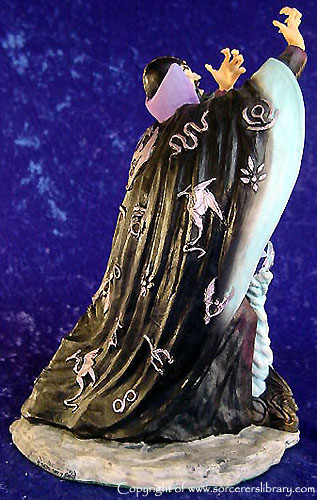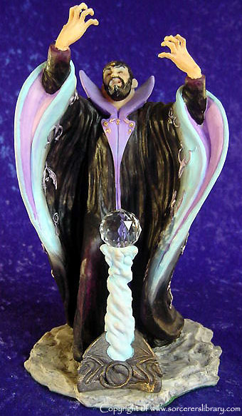 This was the first version of Mezereon and it depicts him as 'The Grand Corrupter' as he is described in the novels but a new version was produced later (EN2176) showing him as 'The High Wizard of Winter' which depicts him before the stories begin as Vrorsts high wizard before Vrorst turned evil and in turn making Mezereon his Gaoler. Mezereon did a lot of experiments with Dragons and other creatures to create new, more evil creatures and a range of Mezereons Evil Minions were produced (EN2192-EN2196) also the Tunnel Serpent were his creations A later piece sculpted in China also shows Mezereon summoning a dragon, called EN3021 Mezereons Craft |