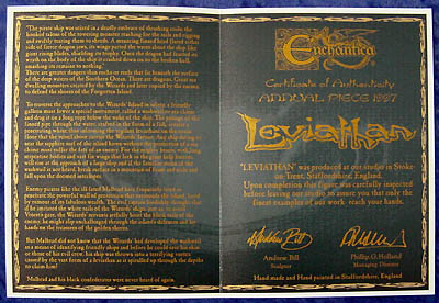 This was the Annual piece for 1997 *Although not mentioned in the books, the story on the cerificate relates to a part of 'The Well of Hope' on page 37 and could be took as an extended scene about boat getting permission to dock. |