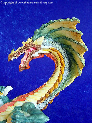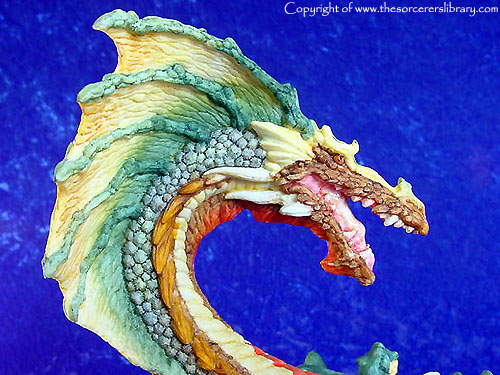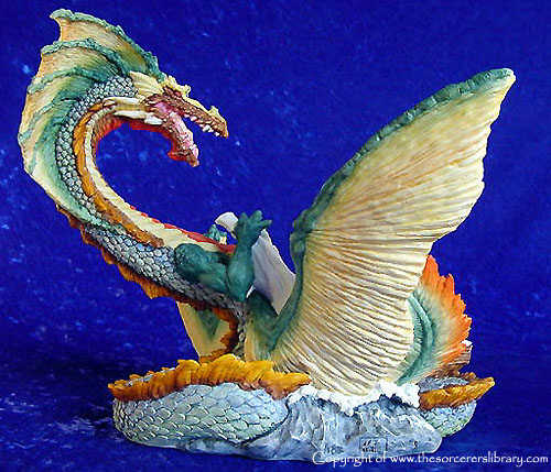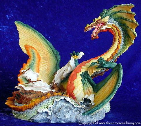 “The pirate ship was seized in a deadly embrace of thrashing coils; the hooked talons of the towering monster reaching for the sails and rigging and swiftly tearing them to shreds. A menacing finned head flared either side of fierce dragon jaws, its wings parted the waves about the ship like giant rising blades, shielding its trophy. Once the dragon had feasted its wrath on the body of the ship it crashed down on to the broken hull, smashing its remains to nothing.”