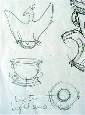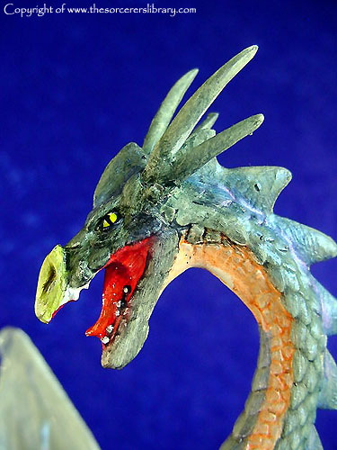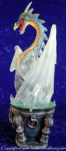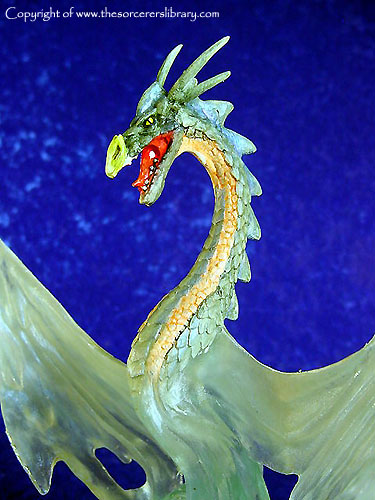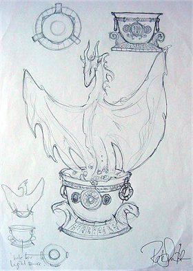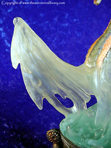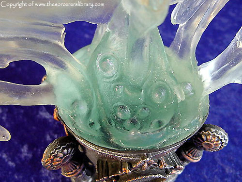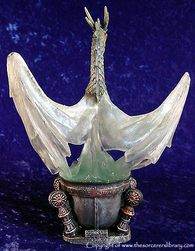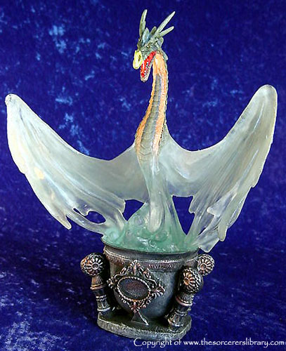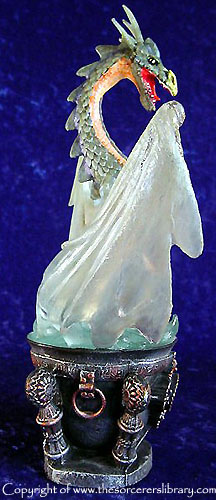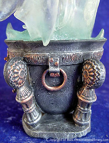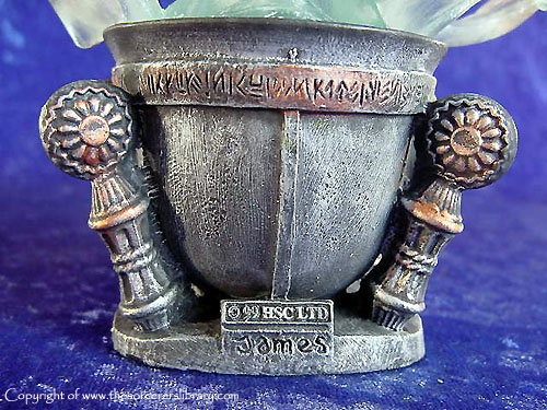 You can see how the piece was originally going to be in two pieces with the dragon in translucent resin and the cauldron probably in white resin with a hole for a light source underneath, the final piece is actually all translucent resin.