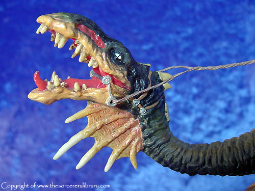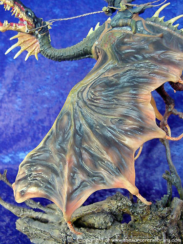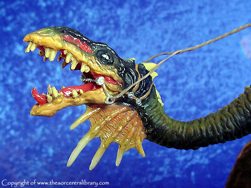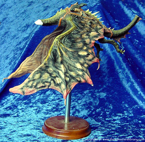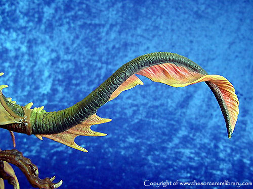 The prototype - less shiney, more shading on the neck fin, red dot behind the eye and copper ribbon for the reigns (which were replaced with painted copper wire on the production piece