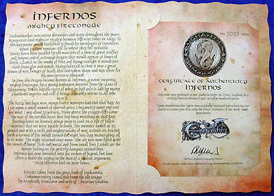 In time this dragon became known as Infernos, a name meaning mighty firetongue, by a young unknown warrior from the clans of Glostomorg. To this day his story of what he had seen is told by many a hardened warrior and still it brings a deathly shiver to all who hear it.