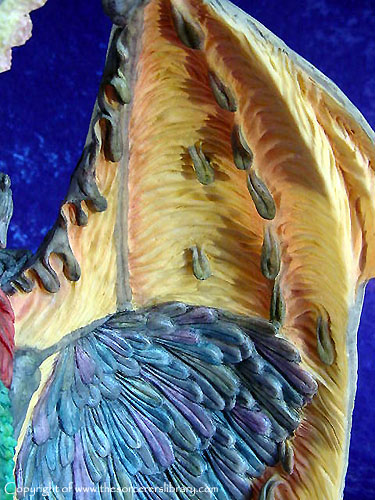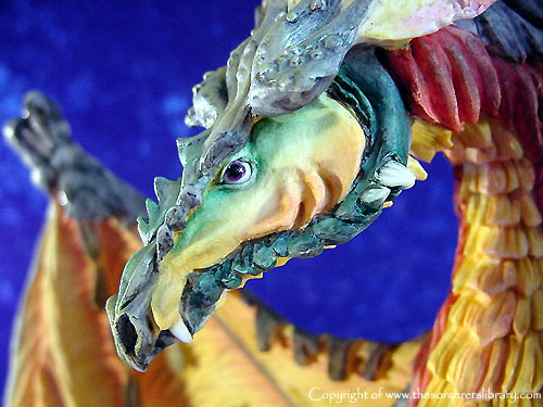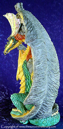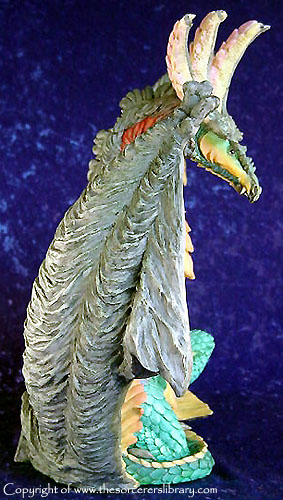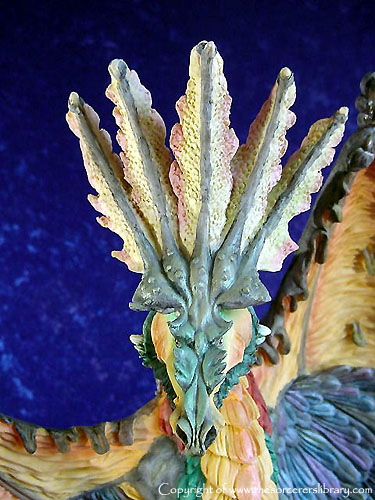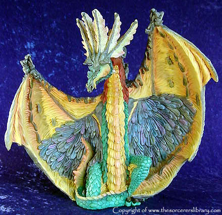 Of the myriad dragon species to inhabit the sunken world of Dragongorge, the paradise dragons are surely the most dazzling. Resplendent in his coat of many colours is Shyira, the paladris. Paladris, like the other paradise dragons, belong to the family of skydancers.