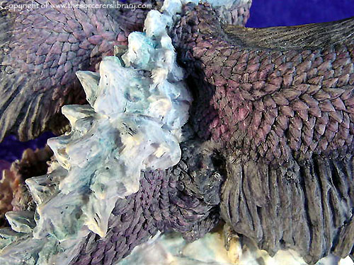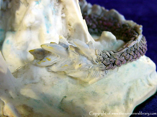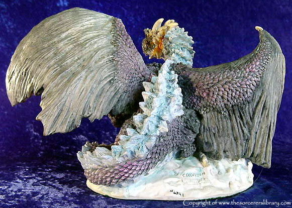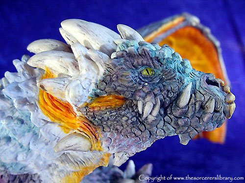 Although a dragon of great mystery, Bethor can be found deep within the heart of the Western mountains, basking in the cool draughts which howl within the cavern walls; his blue hide and resplendent colours camouflage perfectly within his domain and piercing yellow eyes, glow with such luminosity in the darkest reaches and yet embrace the onlooker, not with fear but a calming, reassuring aura.