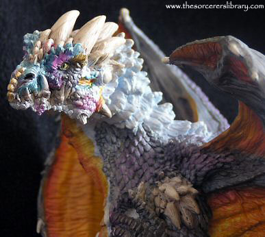 A dragon with great might and of domineering presence, with powerful jaws and a white hot flame, gilt with many decorative scales and awesome head-dress which would make any foe think more than twice and, without doubt, pay considerably, should the foolish rush in.