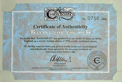 Barbarian was made to fit together with EN2239 Ice Demon and the first 750 were sold as EN2244 The Battle for the Orb and was supplied with a small 'plug' to fit between them as shown in the picture below and they came with a single cerificate