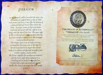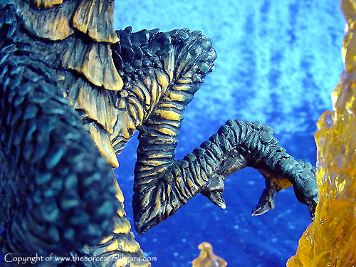 This is actually the second sculpt of Terragor, the first version was sculpted by Ken Fallon and it was much larger than this one but an accident meant that Craig Davison was called in to sculpt a replacement for it. (For more information on the original version scroll to the bottom of this page) I have added a little animation at the bottom of this page that was done by fellow collector Dave Poole, I'm sure you will agree it is pretty cool. |