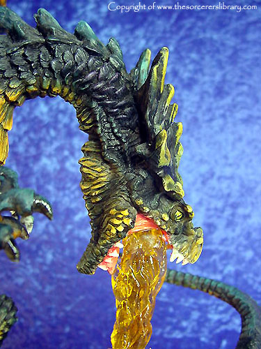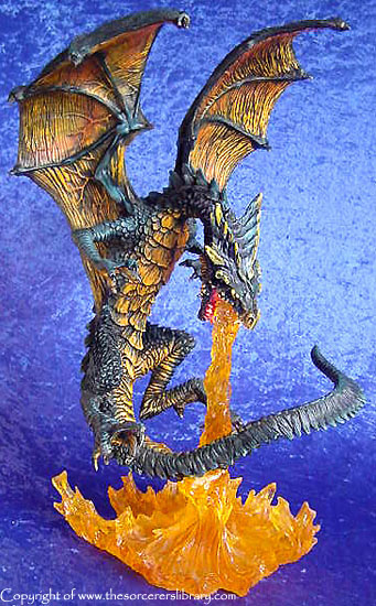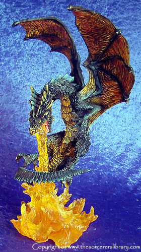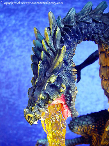 The dragons great cape of leathery wings extinguished the dying rays of the sun, its horned brow lowered to regard the ordered ranks of its enemy and through its mighty jaws issued a mighty column of fire.