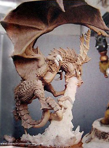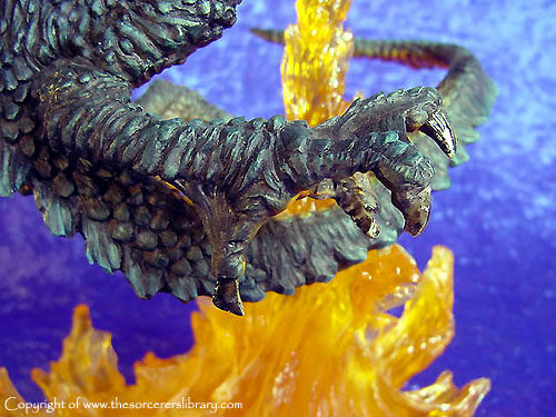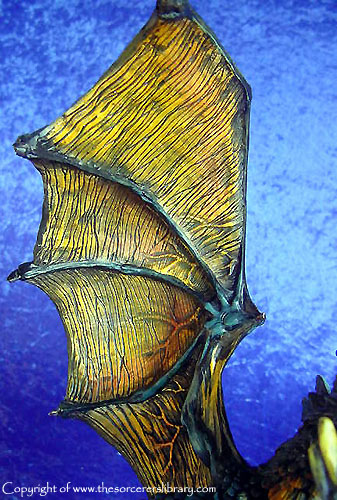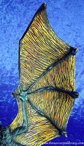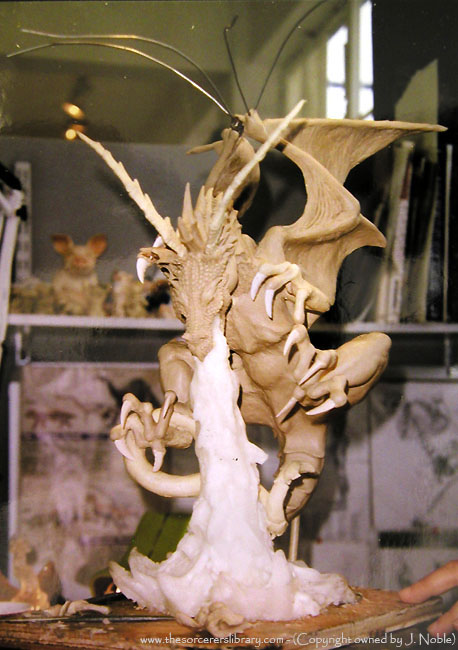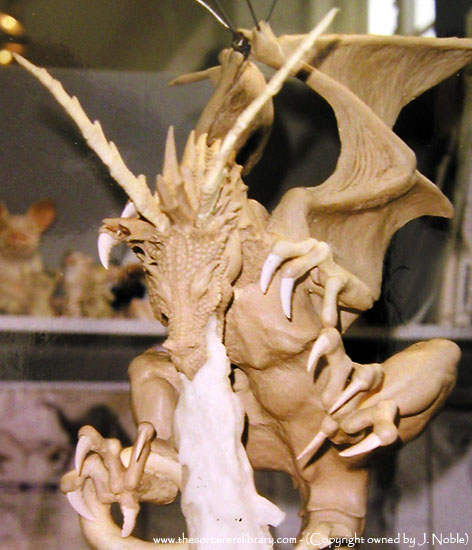 The photos below show what Terragor was nearly like! This version was sculpted by Ken Fallon. It was designed by Rob Simpson to stand 11" tall but Ken got carried away and it became 2 foot in height with a wing span of 2 foot! He worked on it for 6 weeks and then had to take some time off work due to his fathers ill health and when he returned he found that the sun had come through a skylight and melted it! So Craig Davison sculpted the smaller version we have today. Some collectors have been trying to convince Ken to re-sculpt his version though.