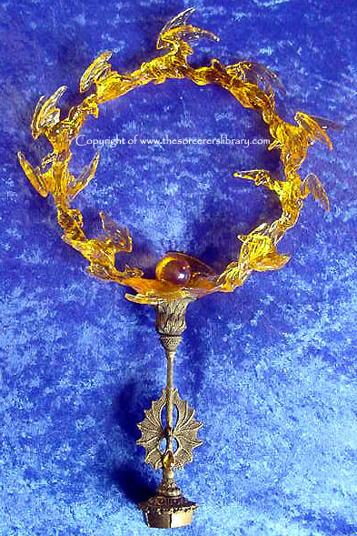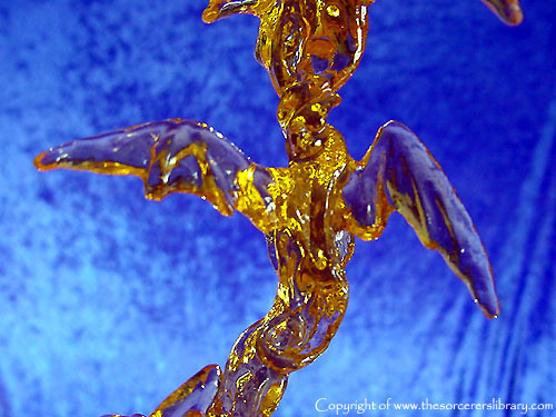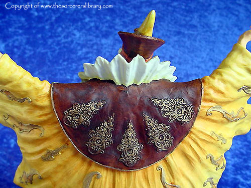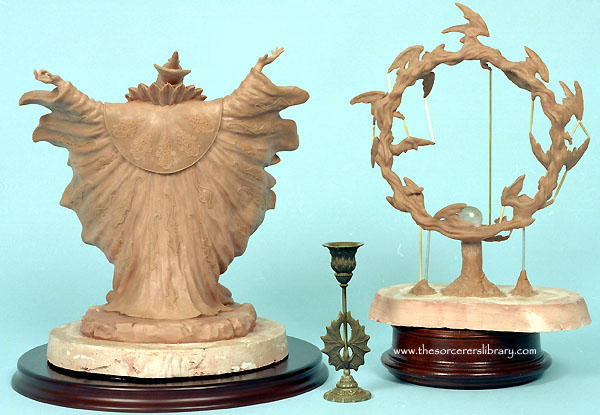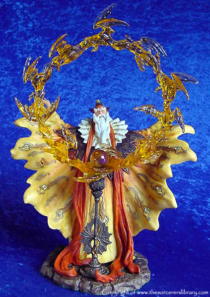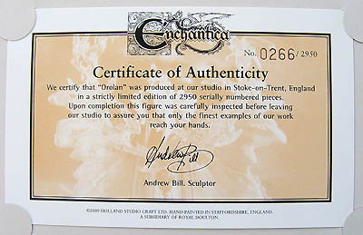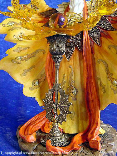 This is the third edition of Orolan. A blue version of this sold at the 2001 Extravaganza auction for £1000 - (see pictures of it at the factory and at the Extravaganza on page two by clicking HERE). Also note that the Dragon ring was cast in blue translucent resin to mach the piece instead of the usual orange. - it is a stunning piece but in my opinion not worth £1000 but I'm sure the new owner was very happy with it at the time and that's what matters as a piece is only worth what your willing to pay for it, it has sold on a number of times since. |