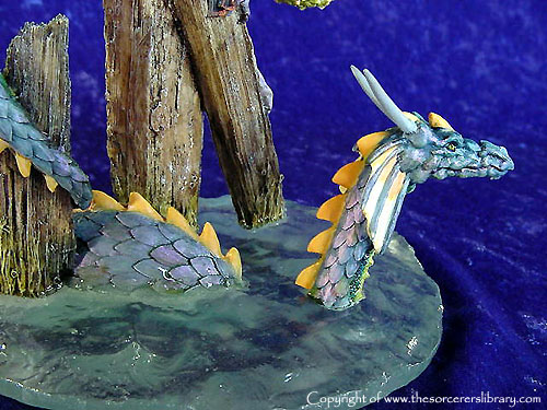 This is the first piece of Enchantica to include two Dragons together on one piece instead of putting two pieces side by side like the 'Dragon Duel' or the collectors club pieces (not including Terragons) A green version of this was sold at the 2001 Extravaganza auction |