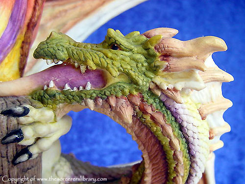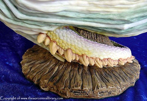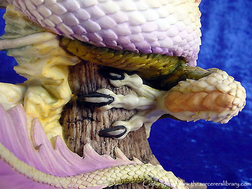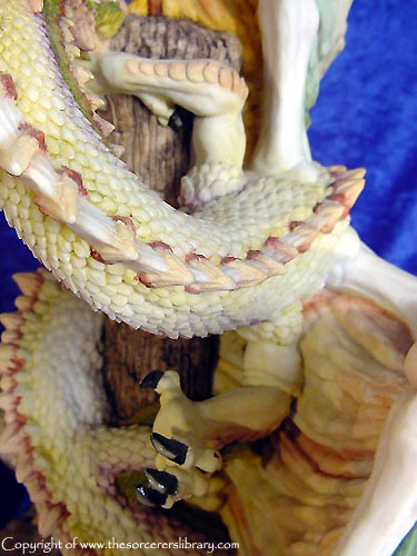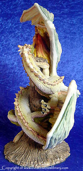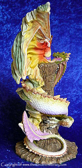 The benign title belies a place of fear and foreboding Once installed upon the lone pillar that rises from the cavern’s belly, the suppliant Wizard or Witch is subjected to the most terrifying ordeal. Responding to a signal from the Wizard masters, the deadly inhabitant of that dark place is roused from his slumber. Aznargen: the serpent dragon, stealthily unravels his coils and ascends the ancient pinnacle; a deadly scaled adversary spiralling towards his prey.
