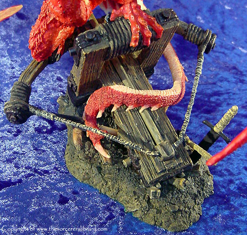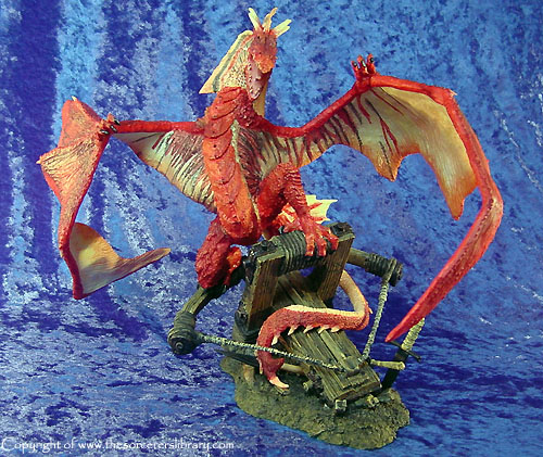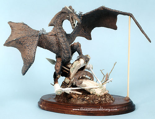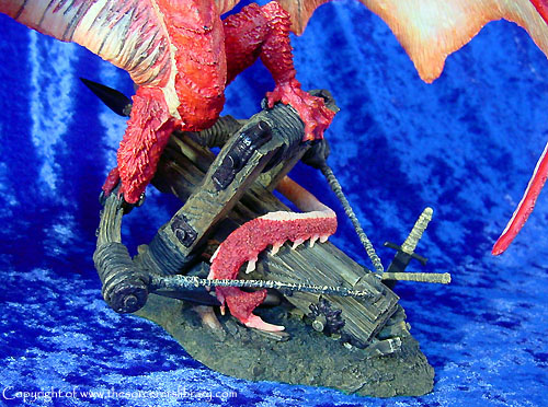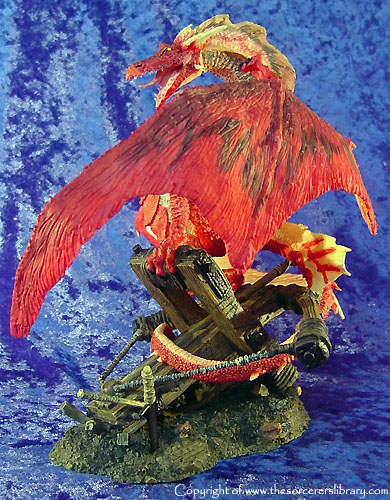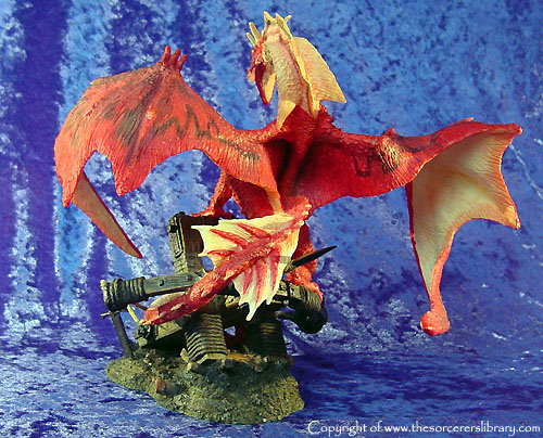 From within the dense smoke of battle came an unearthly cry. A thick torrent of white hot flame engulfed the war machine, turning it instantly to charred dust. The brave warriors abandoned their ballista with worried haste, using the many rocks and caves as cover, dropping their weapons as they hurried their escape. The air was filled with the stench of fear from out of the midst a horrendous form took shape. The smoke swirled, flames danced and landing on the decrepit shape was “Grondalln”. A dragon of might, one of many war dragons of Pantheera known for their ferocious attacks and unsurpassable immunity to fear, made these dragons an unsurmountable force in the Pantheeran guard. Poised in attack, the mighty weapon now just twisted metal and dust, aids the mighty warrior as it poises itself for another attack upon more fright filled prey.