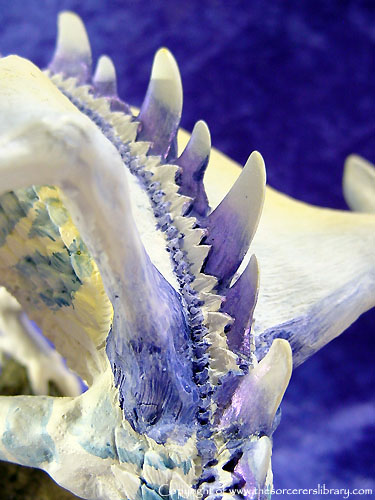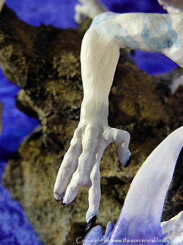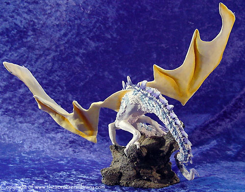 A cold winters moon shone from a starless sky. Upon the frozen wastes, nothing stirred not even the infamous ice trolls would walk such barren wastes. Yet, above the highest peaks of the frozen mountains a fearless cry rang out. Wisps of new snow, violently washed aside to two huge wings who's downdraught carved a cruel pattern in the snow below. Trails of white disappeared into the darkness which fell and danced apon the disturbed airstream. For this was the mighty dragon Zorostra and this was his home. A dragon well known to the minions of winter as the fearsome steed of one of Vrorst's Servant Rhazgor. The wizard had reared this beast with his own hand which made this dragon so loyal to his master and gave Rhazgor a respect and fear within many winter ranks. Zorostra, knew of his masters power and however much he respected his master and friend, he knew that Rhazgor would not forgive once crossed. The cold wind passed under his wings, his sleek, strange hide, decorated with vivid stripes of blue, carved through the mists with ease until resting momentarily upon a cold stoney peak. Twisted in stealth, wings outstretched, his teeth barred against blood red gums called out into the darkness, a signal, to his master of his impending arrival.