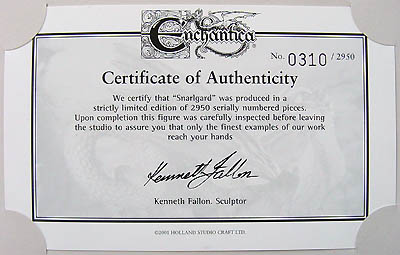 This is the third Edition of Snarlgard This was made to fit together with EN2257 Gorgoyle, EN2266 Arangast and EN2361 Grawlfang as a set piece, trouble is, Ken Fallon sculpted Grawlfang back to front so it ruined the set up as they don't fit together properly now! |