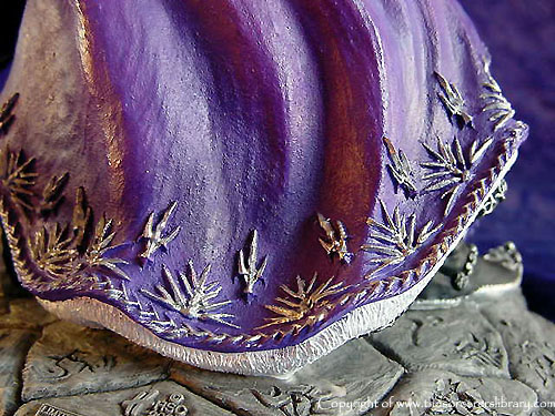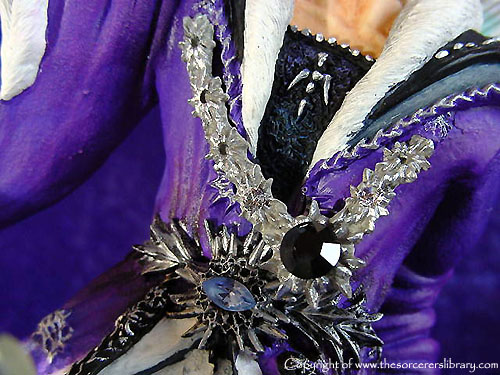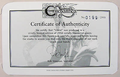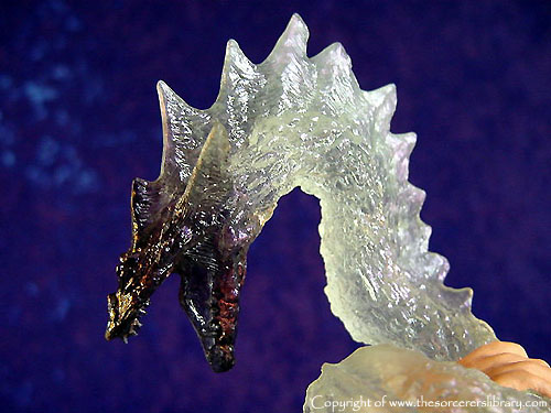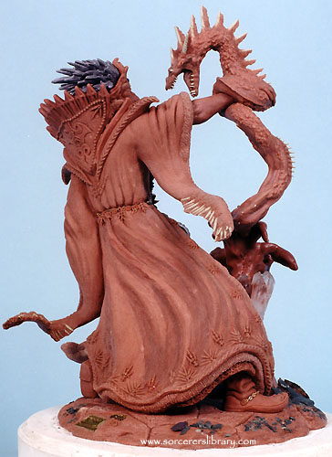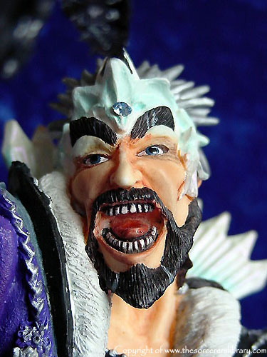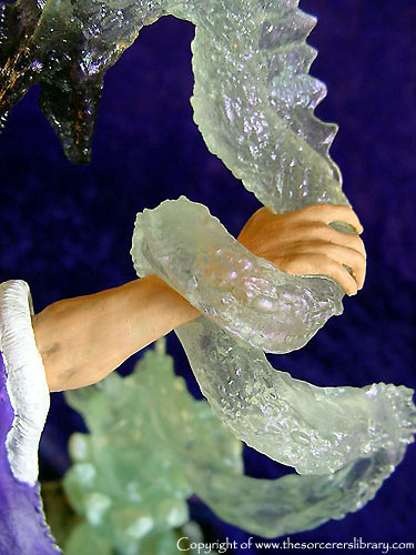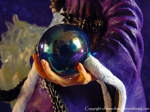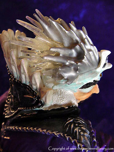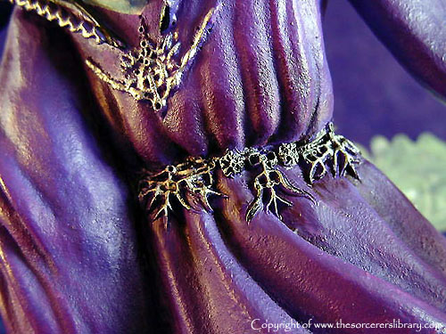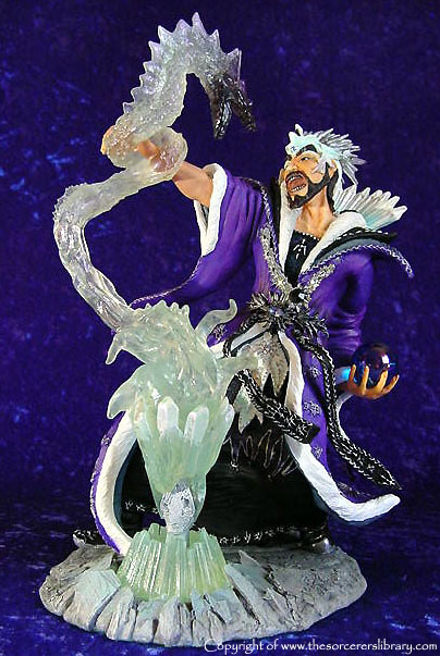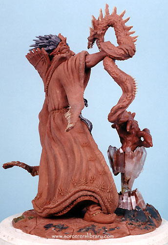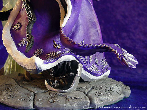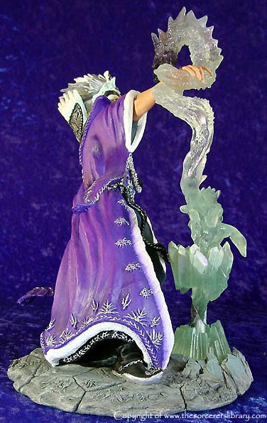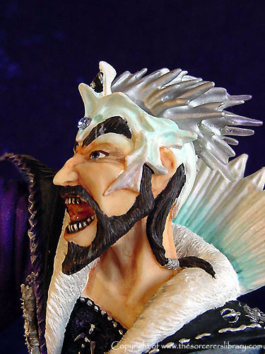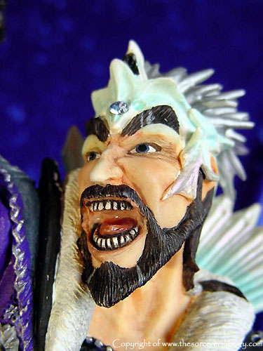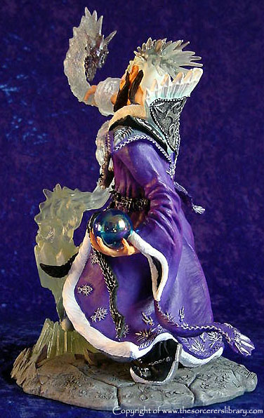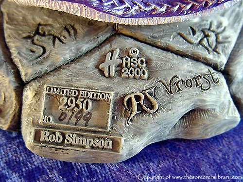 This is the third edition of Vrorst I do like this piece for the amount of detail but when put up against the 3rd edition Spring, Summer and Autumn Wizards (all by Andrew Bill) then this Rob Simpson piece doesn't seem to fit in, I don't know what it is but the best way I can describe it is that it looks like a 'Caricature' of Vrorst, he seems to need to be just that little bit taller and have a smaller head to be in scale, but that is just my opinion. Warning: be careful when picking this piece up, there are two parts to his long belt at the front and one of them is only attached in one place and it is very flexible and liable to break if pressed |