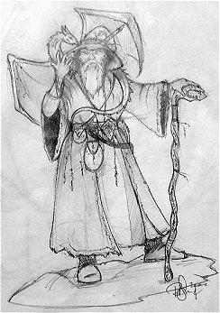 Ethva scrambled to her feet and ran to greet the tall figure emerging from the generous shade of a large iron beech. If Jonquil and Rattajack had been anticipating a personage with an appearance similar to the richly adorned Heskel, they could not have been more mistaken. The wizard that stepped into the sunlight was clothed in a simple, dowdy robe made from plain, earthy coloured cloth woven for strength rather than show. The first thing to notice was the well-worn wide brimmed hat, its long thin point bent in half and weighed down with dangling beads and charms. The broad band above the rim was stuffed with a variety of herbs, feathers, grasses, sticks and protruding into the air most notably a long, beautifully carved flute.