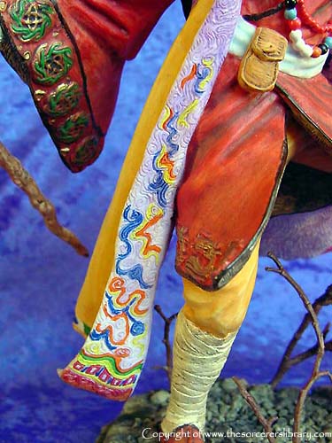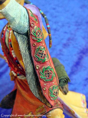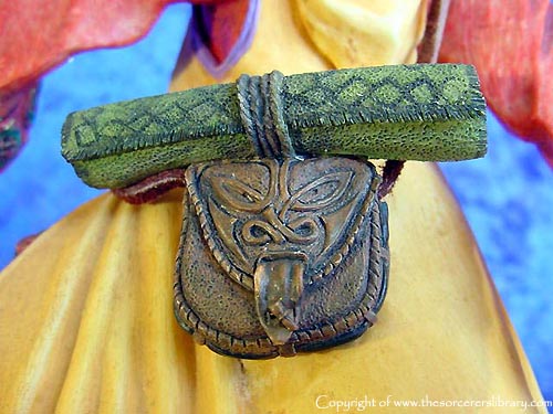 Karreg is one of Throstle's Apprentice wizards who finds the blue Terragon called Trea and in doing so almost gets killed by the Dragon 'Grymwarg', Luckily for Karreg another Dragon 'Sandarach' distracts Grymwarg so he can escape The bag strap is made from real leather. |