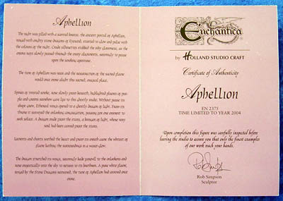 This piece came with the full colour card folder type certificate