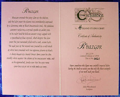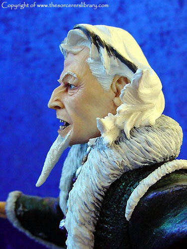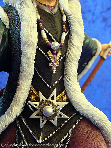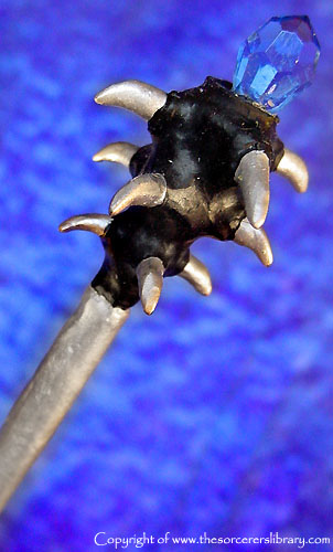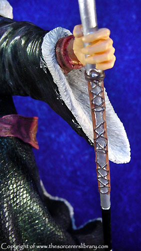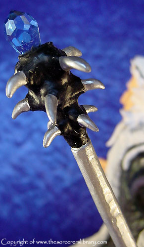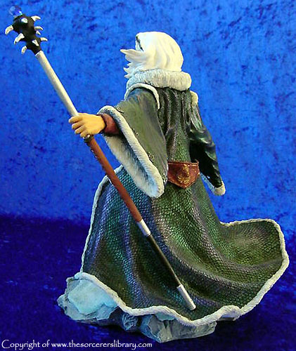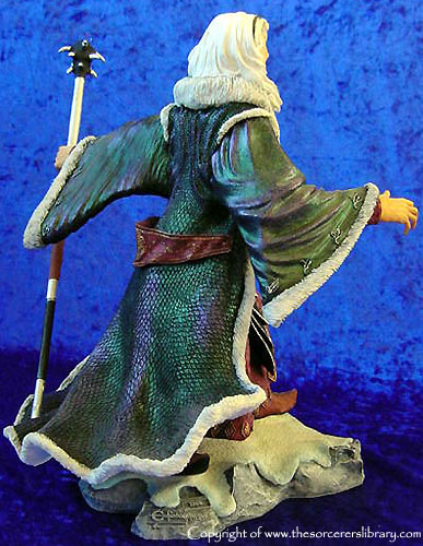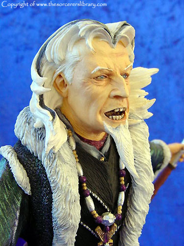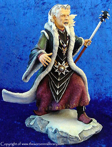 Rhazgor entered the fiery glow of the shelter, and the light from the flames was immediately captured by a glistening robe of black dragonscale mail, the fabulous garment reflecting a myriad sparks of gold fire. In his right hand he held an ancient staff capped with a spearhead of blue crystal, witch despite the glow from the fire remained filled with cool, azure light. The aged face of the wizard was framed by a wild shock of white hair streaked with two apposing plumes of black. A sharp dagger of a beard thrust down from his chin starkly white against the colour of his magnificent robe; and as he approached, Juvula saw that his eyes were grim discs of jet set in wide pools of ivory.