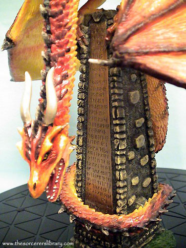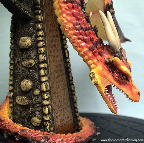 This is one of the pieces that was to be released by Royal Doulton but they cancelled the range in typical Royal Doulton style (they never knew how to deal with a fantasy range) RD sold the remaining stock and range to a company called Xystos and this is one of the ex RD pieces |