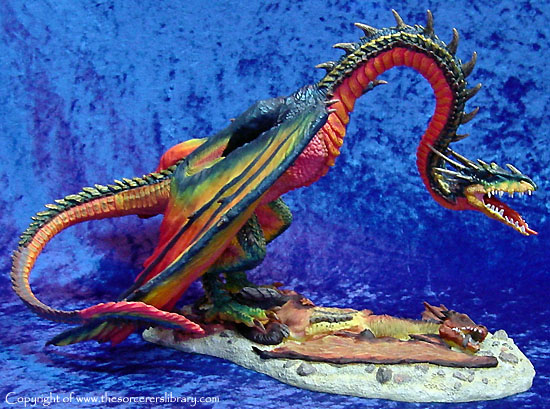 Enchantica has seen its fair share of battles, always entailing Good against Evil. But these have been man-made affairs, embroiling innocents into their machinations of power. True, the evil Vrorst had to be deposed, for his insanity would have surely seen all of Enchantica, nay, methinks the whole world, enslaved to his whims. Yet, what is to be said of the balance within nature? Can it be called war, if one species takes hostile action upon another? Of course not, it is quite simply ‘Nature’. But what of the truly solitary beasts the ones who really make it their place in the circle of things to kill, scavenge all they come across? Enchantica can boast, if that is indeed the right term, a plethora of these beasts. Creatures that should be confined to nightmares and not inhabit the real world. Gracklins, Massazauga, Craccators, Tunnel Serpents and many more, are just such creatures that I have witnessed for myself, upon my journeys. Voltanis (Draco Thecodontia) is a ruthless killer that inhabits the deserts to the South East. He will claim a territory (equivalent to 3 days journey on horseback, from any given point) as well as anything that enters this province. His senses are keenly adapted to this environment, he can smell one drop of blood for up to 8 leagues away. His powerful maw is capable of shredding even the toughest of carcasses that have been long in the scorching sun.