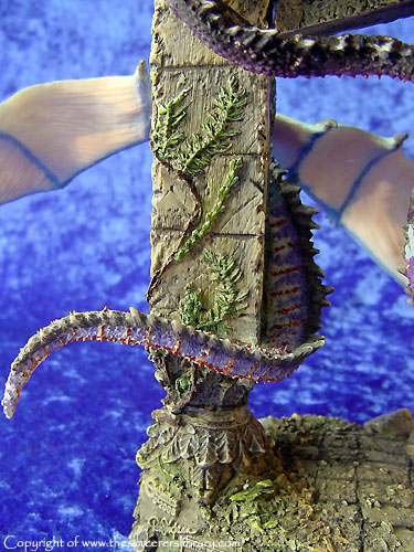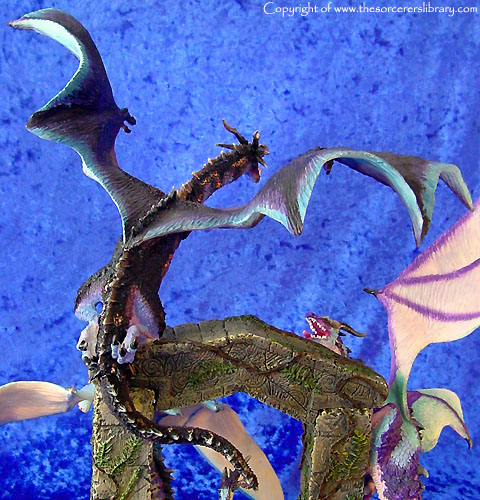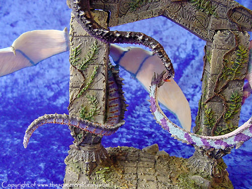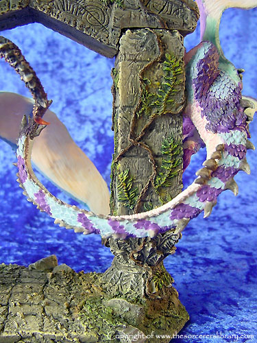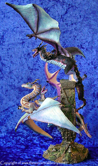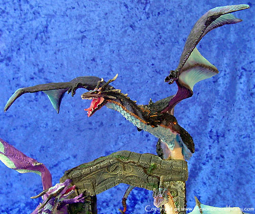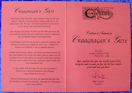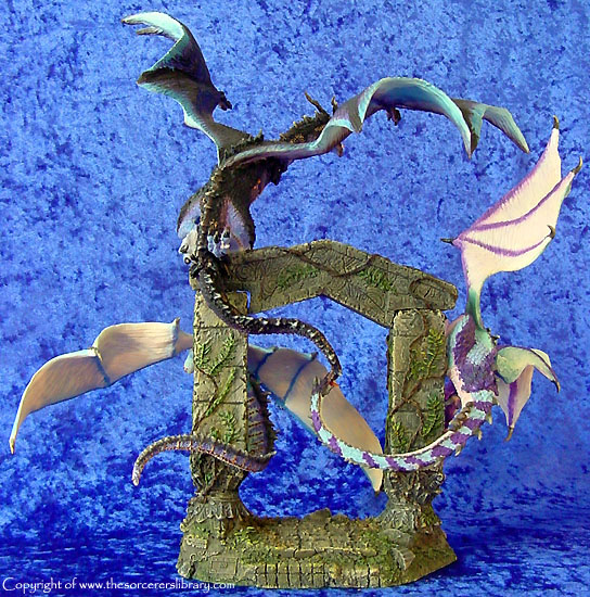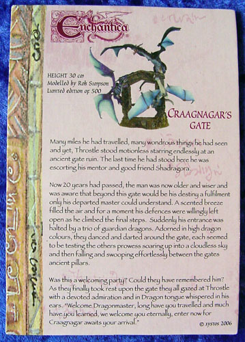 Many miles he had travelled, many wondrous things he had seen and yet, Throstle stood motionless starring endlessly at an ancient gate ruin. The last time he had stood here he was escorting his mentor and good friend Shadragora. Now 20 years had passed, the man was now older and wiser and was aware that beyond this gate would be his destiny a fulfilment only his departed master could understand. A scented breeze filled the air and for a moment his defences were willingly left open as he climbed the final steps. Suddenly his entrance was halted by a trio of guardian dragons. Adorned in high dragon colours, they danced and darted around the gate, each seemed to be testing the others prowess soaring up into a cloudless sky and then falling and swooping effortlessly between the gates ancient pillars. Was this a welcoming party? Could they have remembered him? As they finally took rest upon the gate they all gazed at Throstle with a devoted admiration and in Dragon tongue whispered in his ears. “Welcome Dragonmaster, long have you travelled and much have you learned, we welcome you eternally, enter now for Craagnagar awaits your arrival.”