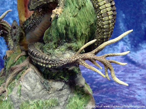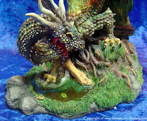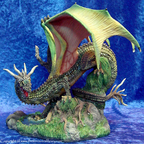 Within the realms of the eastern flank of Dragongorge, a strange yet fabulous breed of Dragon dwell. This comparatively small dragon has the capability to merge within its surroundings, a dense network of live intertwined scales cover the body enabling its user to camouflage itself against any object. So effective is this, that Shadragora and much later Throstle, found themselves surrounded by at least twenty of these beasts before their pack leader “Chaymayl” welcomed the High Dragonmasters to their domain. The chameleon dragons were rewarded for their loyal service during the great betrayal, Fantazar and Waxifrade the High Wizards of Spring and Autumn gave these special Dragons a new home within the safety of Dragongorge’s wondrous forests. Danskamere the Great Observer gave special thanks to Chaymayl’s hospitality. And hoped that one day, in later years, to return to his lands.