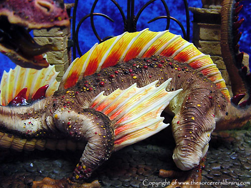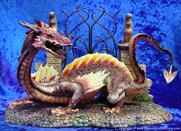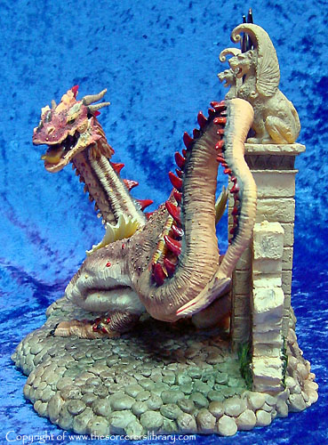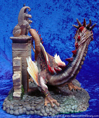 In days of old, a great wall ran along the Eastern border of Dragongorge. Many a guarded entrance was to be found along its circuitous route. Those days, only the High Wiseguards could enter through and into the hallowed land of dragons. Yet, the gates were not guarded by man, but by dragons. And only by showing due reverence (and correct password) to the attendant dragon, could the bidder seek entrance. Failure to either was instant death. Even today, though the walls lie in ruins, some outposts can still be found to be guarded. Here, Setrax (flightless member of Draconis Vermithrax) can be sighted. Any sign of age he bears, belies his swiftness of movement. And with it being many a bygone year that anyone sought entrance into Dragongorge, let alone paid deference to him, Setrax is most definitely a dragon to steer a wide path around.