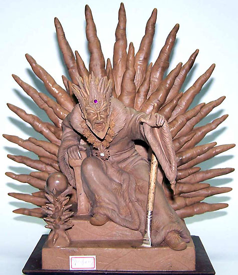 Ignore the Rob Simpson name on the back of the piece, it was sculpted in the Far East from a design Rob was asked to do, he did NOT sculpt this piece Personally I don't see the need to rehash an old idea, this was done so perfectly by Andrew Bill with his Vrorst on the Throne! Also the Vrorst is terrible compared to Andrews work, he has been turned into a cartoon character! where has the realism gone from the figure. If it's not broken, don't try to fix it! The piece also lights up! and has the sound of Vrorst cackling! going into toy and tacky gift territory here I fear! OK as an expensive christmas ornament I suppose If this is what we are to expect from sculptors in the far east then I fear for the range |