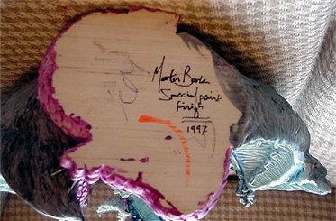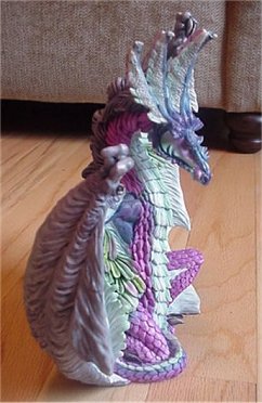 The Shyira below was painted in 1997 by Martin Barker as an Artisit touring piece at Natures Creations in San Antonio Texas. This is a one in about twenty pieces nation wide. Holland Craft Studio sent original whites of the dragon Shyria to retailers that participated in artist tour. There was a south tour and a north tour. Both tours were two different artists. This dragon was part of the southern tour of the US