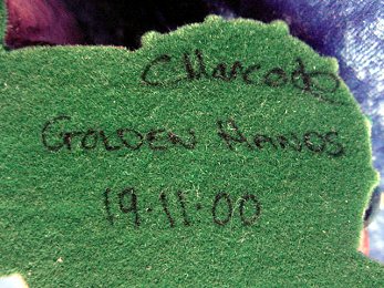 This Arangast was an artist touring piece. It was painted at Goldenhands by C. Hancock on the 19th of November 2000. It was won by Jo and Del Nutting