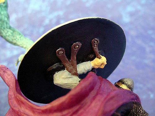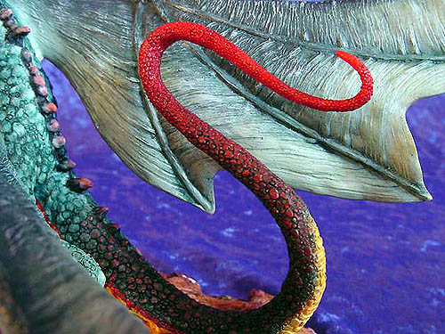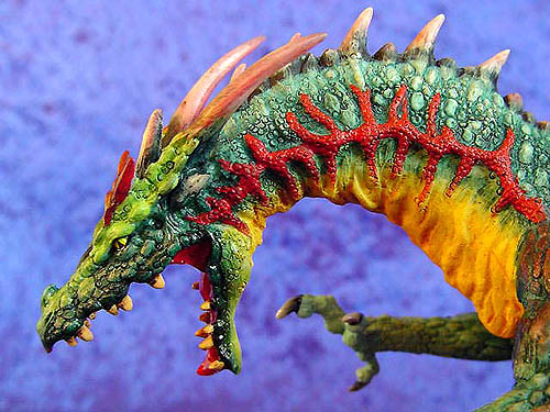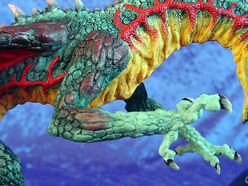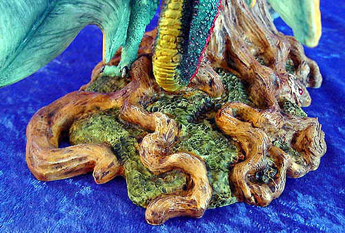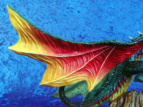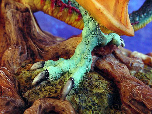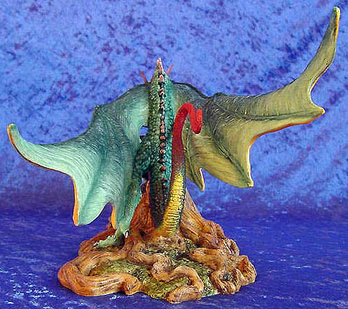 The Original paint trial for this piece was painted by Ex Enchantica artist Caroline Briggs and if you compare it with the picture of the production version you can see that the only changes needed was to add more orangey red to the tail to make it stand out better against the wing and add a bit more red to the under side of the wings - (for comparison photos see bottom of this page ) |