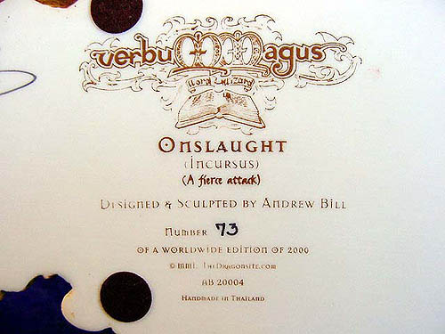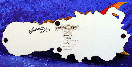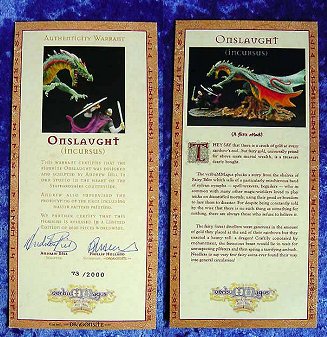 Below is the front and back view of the certificate that comes supplied with 'Onslaught' it comes personally signed by Andrew Bill and Phillip Holland (not the usual printed signature) and is hand numbered